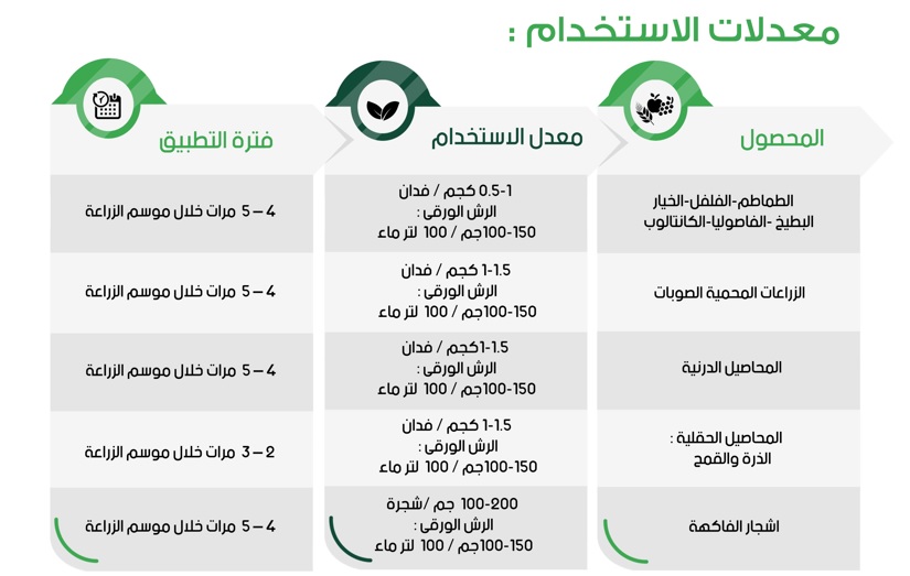 - سهل الإستخدام ويقبل الخلط مع الأسمدة و يعمل على زيادة إنتاجية النبات بصورة كبيرة .